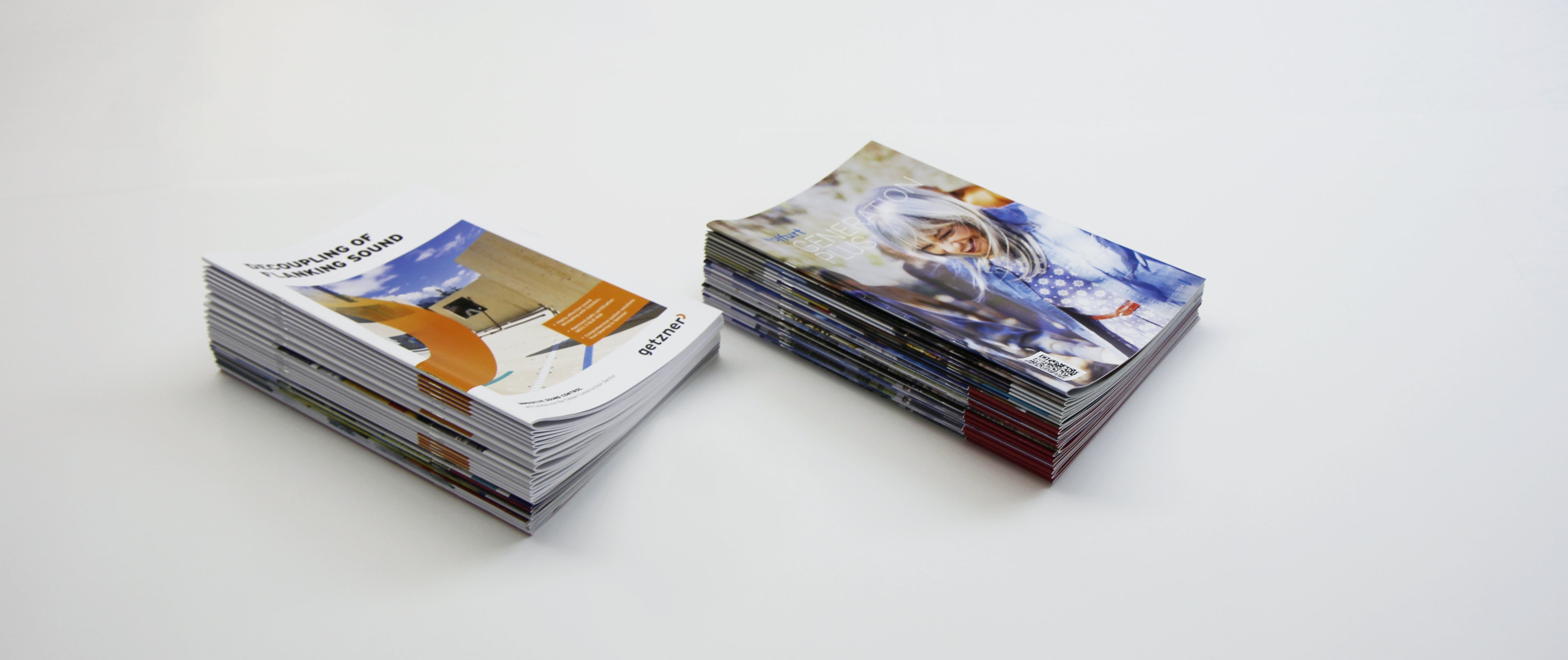 Broschüren in 3 Papierqualitäten, Formate A4 oder A5.