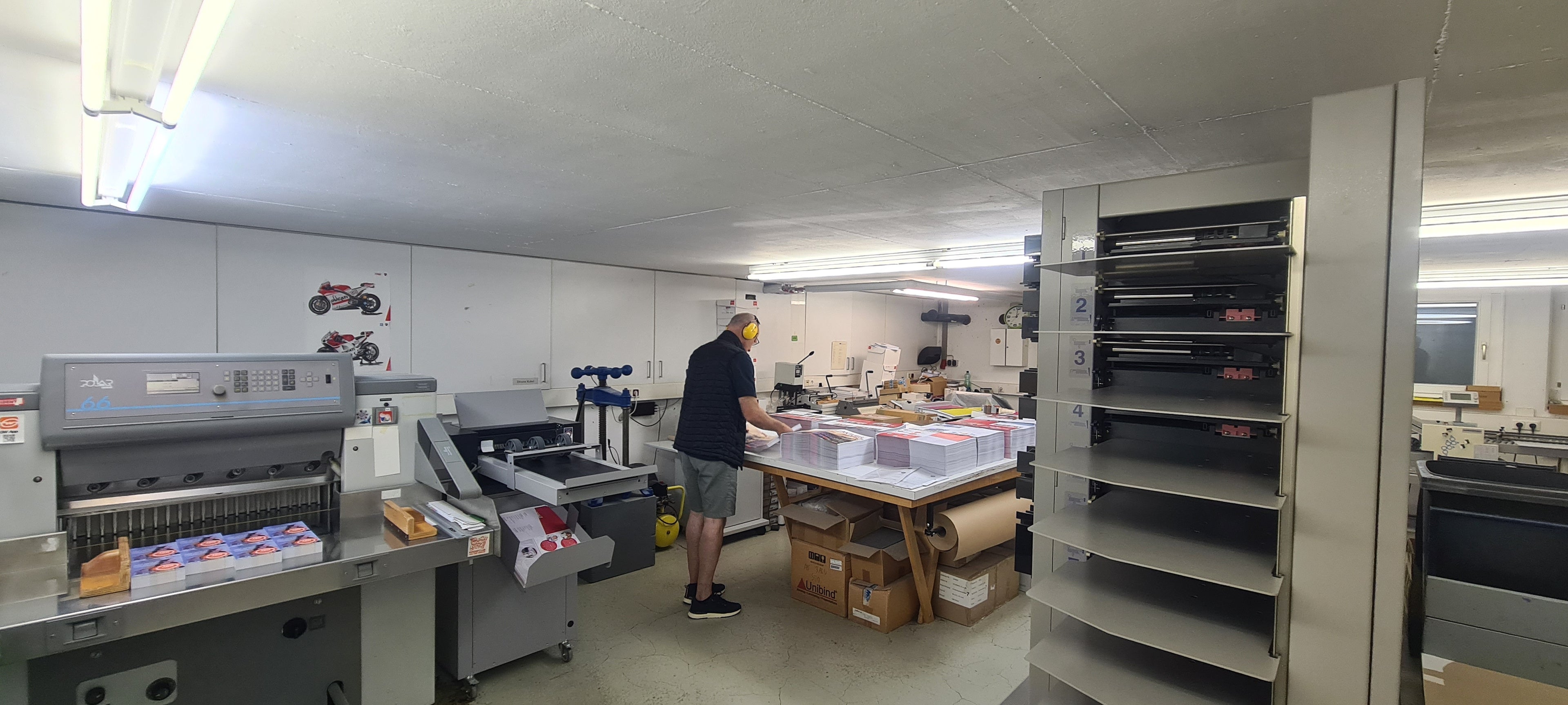 Dank schlanker Strukturen und direkter Kommunikation sind wir in der Lage, auf besondere Wünsche schnell und unkompliziert einzugehen. Vom Druck bis zur Weiterverarbeitung wie Falzen, Heften, Binden oder Konfektionieren – alles geschieht direkt bei uns im Haus.